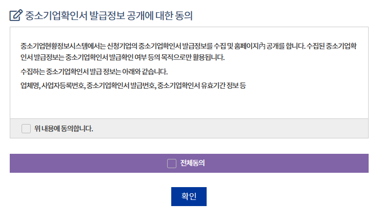 아래의 순서대로 진행하시면 아주 쉽게 중소기업 확인서를 발급 받으실 수 있습니다.