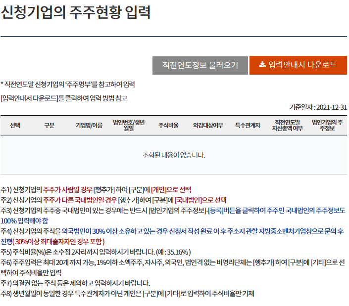 7.  신청 기업의 주주현황 입력